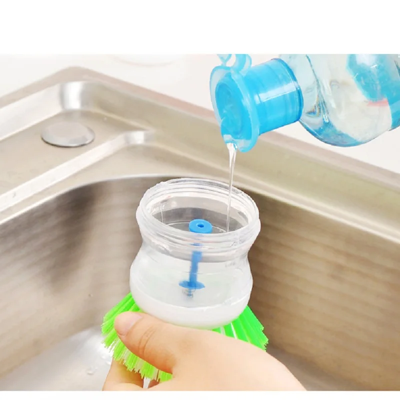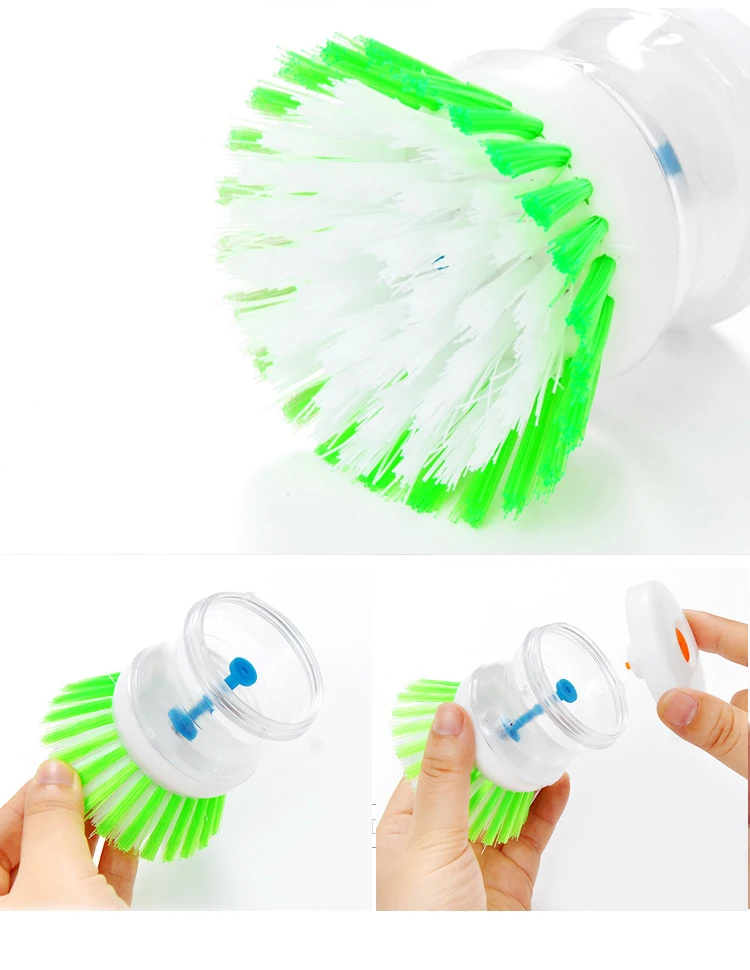 Put dishwashing liquid into the bottom, and press it.