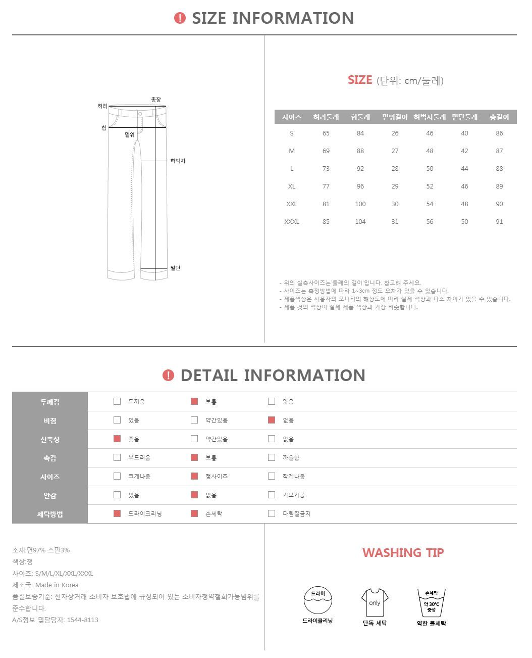 셀린느 밴딩 나팔 팬츠#73609MD COMMENT 누구나 탐내는 완벽 핏으로 어느 각도에서 봐도 예쁜 팬츠 소개할게요 세련된 라인감은 물론, 편안함까지 갖추고 있어 더욱 실용적일 뿐만 아니라 시크한 느낌으로 멋스럽게 즐기기 좋아 갖고 싶은 아이템이랍니다:)DETAIL TIP 부드러운 코튼 데님 소재와 스판 혼방 소재로 보다 부드럽고 쫀쫀하게 라인을 슬림하게 잡아드림은 물론, 무릎에서부터 A 라인으로 떨어지는 부츠컷 라인이 단번에 위트있는 스타일링으로 완성해드린다는 사실~ 넓은 인 밴딩 타입으로 허리 라인은 슬림하게, 다리 라인은 길어보이게, 활동성은 편안하게! 여러가지의 매력을 지니고 있어 더욱 실용적이며 너무 라이트하거나 너무 칙칙하지 않은 데님 컬러이기 때문에 어떤 컬러의 상의와 매치해주셔도 어색함 없이 알맞는 밸런스를 선사해드린답니다:) 또한, 군데군데 데미지 디테일과 밑단 컷팅 라인이 보다 섬세하게 빈티지한 포인트로 마무리 해주어 디자인부터 디테일, 컬러, 핏 모든게 완벽 그 자체-! 무려 S-XXXL 까지 다양한 사이즈로 구성되어 있어 체형 고민 없이 누구나 남다른 핏을 완성해드려 적극 추천드릴게요-♡COLOR,SIZE TIP 컬러는 청 1color로 구성되어 있으며, 모델의 착용 컬러는 청/S 입니다. 사이즈는 S-XXXL 사이즈로 진행되오니 고객님의 체형에 맞게 선택하셔서 예쁘게 착용하시길 바랍니다.