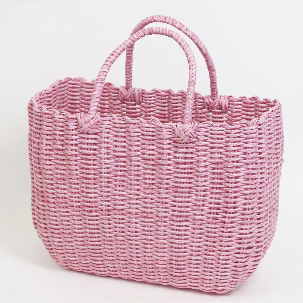 買い物などのお出かけにぴったりの大きめのカゴバッグです。PP(ポリプロピレン)素材なので水に濡れても安心♪