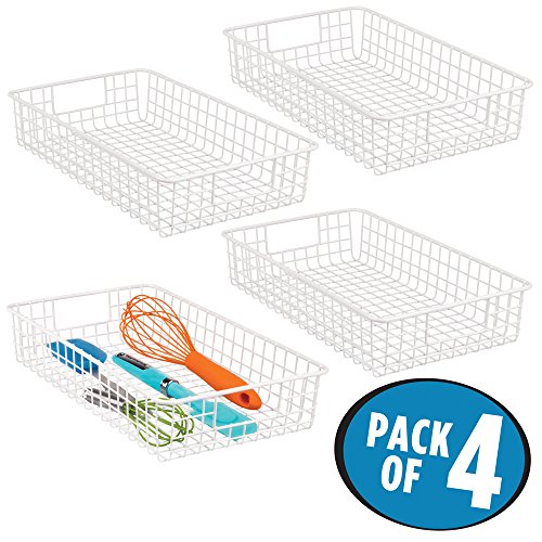 mDesign Wire Storage Basket for Kitchen, Pantry, Cabinet - Pack of 4, Slim, Matte White