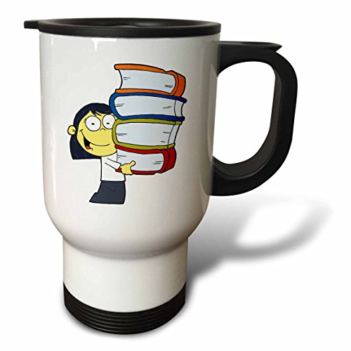 3dRose tm_118549_1 Cute Asian Girl Student with Lots of Books Travel Mug, 14 oz, White