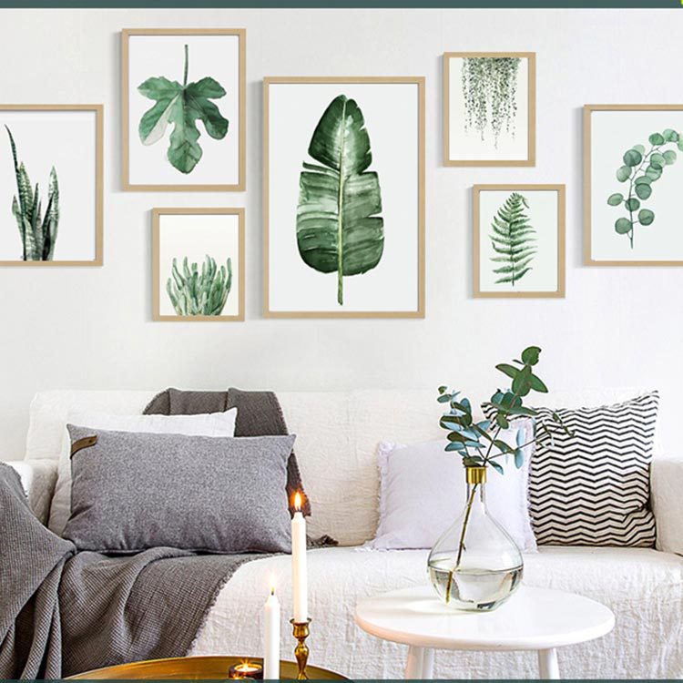 北欧田园绿色植物树叶小清新组合现代简约装饰画画芯客厅装饰画