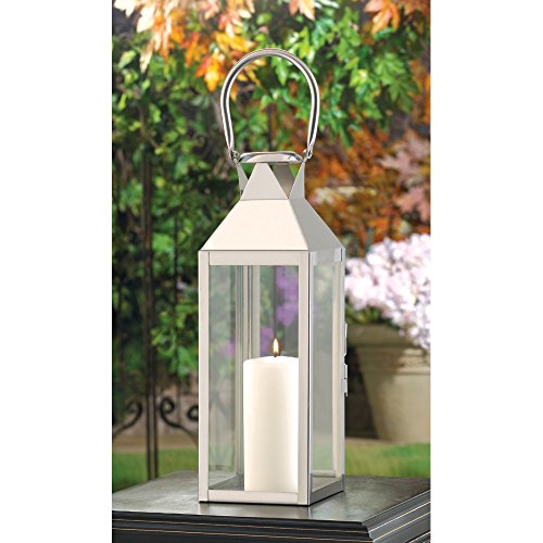 -. Feature : Elegantly designed sleek contemporary candle lantern. / Shining silvertone finish with glass panels. / Lit candle turns it into a glowing piece of modern art. / Perfect gift for housewarmings and other occasions. / Great decorative item for weddings and parties.