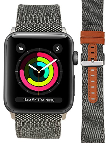 -. Feature : High End Material Comfortable Touch: Made of high quality canvas fabric, decorated with handcrafted exquisite stitching, unique soft microfibre lining, different from most of other bands, extremely comfortable to wear, matches all outfits. / Upgraded Adapter Easy Switch: We developed advanced adapter which is no screws needed, you never worry that the adapter breaks and your watch falls off. The sP.R.Ing metal lugs slide into the watch slot easily and fit perfectly. / Metal Buckle Secure Fit: Polished solid stainless metal buckle ensures the secure fit. The whole band would stay closed securely and stably. Compatible with Apple Watch Series 3/ Series 3 with Cellular/ Series 2 / Series 1/Edition/+ / Adjustable Length Perfect Fitting: Sufficient precious holes are available for adjusting from tiny size to extra large. Fits 185mm-233mm(7.3 inch-9.2 inch)wrist. / 1 Year Warranty: You will be satisfied with this buying experience if you want a 100% Satisfaction Guarantee, including 60-day Money Back Guarantee, 1 Year Warranty on manufacturing defects & excessive wear.