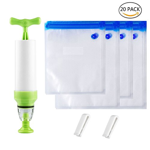 Sous Vide Bags Kit for Anova Cookers - 20 BPA Free Food Vacuum Sealed Bags, 1 Hand Pump, 2 Bag Sealing Clips, Reusable & Easy to Use, Practical for Food Storage & Cooking