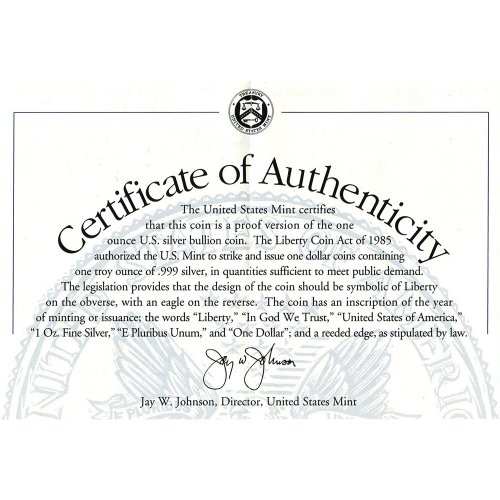 2001 W American Silver Eagle Proof $1 OGP US Mint