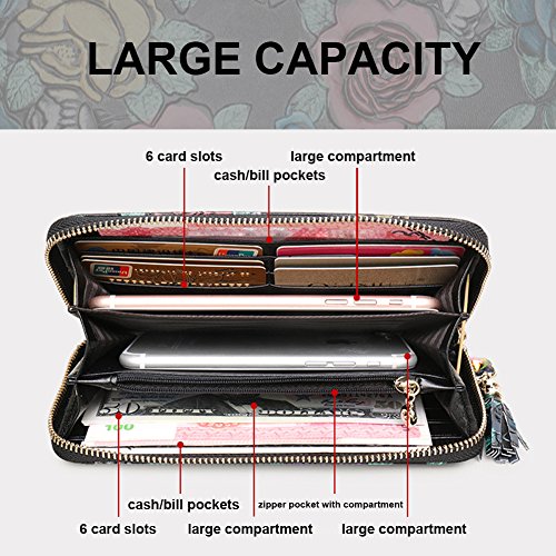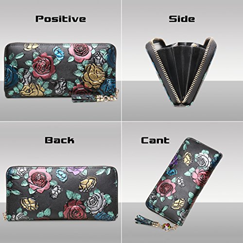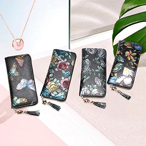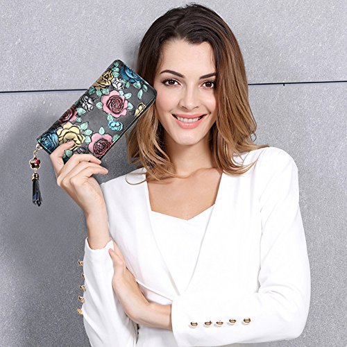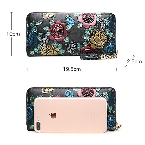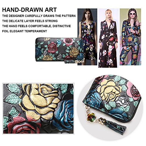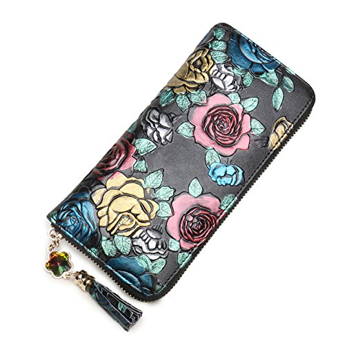 Charmore Women's Vintage Flowers Genuine Leather Clutch Wallet Card Holder Ladies Purse