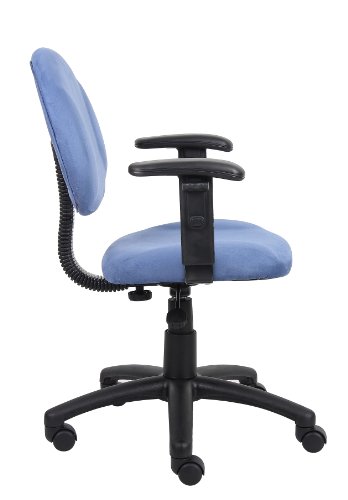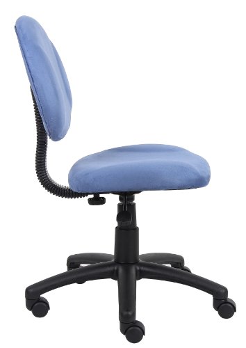-. Binding : Kitchen -. Brand : Boss Office Products -. Feature : Thick padded seat and back with lumbar support / Pneumatic seat height adjustment / 5 star nylon base allows smooth movement / Available in a variety of colors / Overall dimensions: 25W x 25D x 35-40H inches -. Label : Boss Office Products -. Manufacturer : Boss Office Products -. Model : B325-BE-Parent -. MPN : B325-BE -. PackageQuantity : 1 -. PartNumber : B325-BE -. ProductGroup : Furniture -. ProductTypeName : HOME_FURNITURE_AND_DECOR -. Publisher : Boss Office Products -. Studio : Boss Office Products -. Title : Boss Office Products Perfect Posture Delux Microfiber Task Chair without Arms in Blue