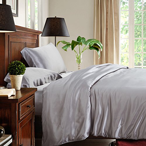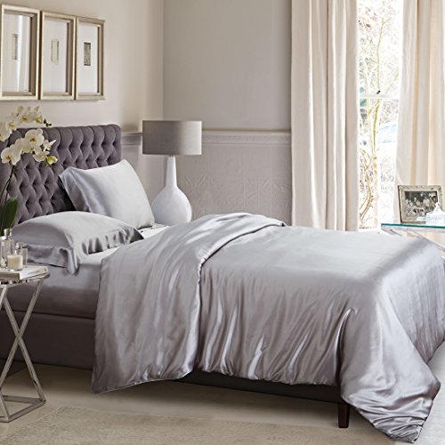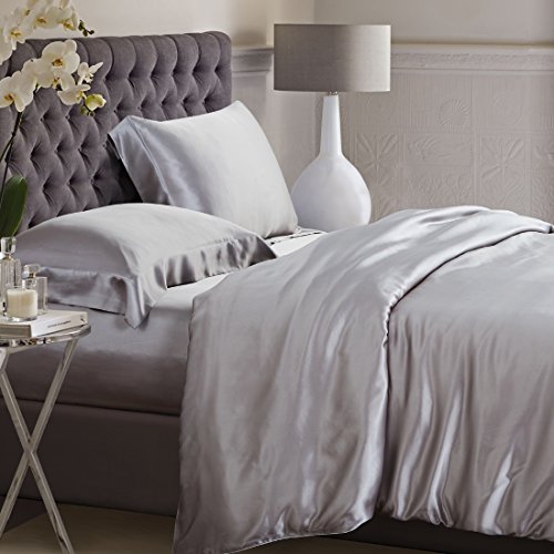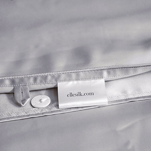Silver silk duvet cover is made from the finest seamless Mulberry silk, which creates an unparalleled sense of luxury and comfort next to the skin. It features button opening for ease of use and interior ties to keep the duvet in place. For the ultimate luxury sleeping experience, ElleSilk's silk duvet cover is wonderfully soft with a subtle sheen. Material: 100% Pure Mulberry Silk Weight: 22 momme Closure: Buttons Colors Available: Black, White, Ivory, Light Pink, Cappuccino, Silver, Charcoal Grey, Dark Blue, Sage Green, etc. Care: - Machine washable at 30°C using mild silk detergent
