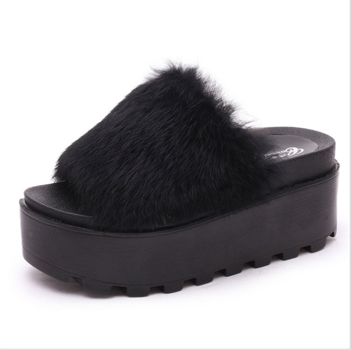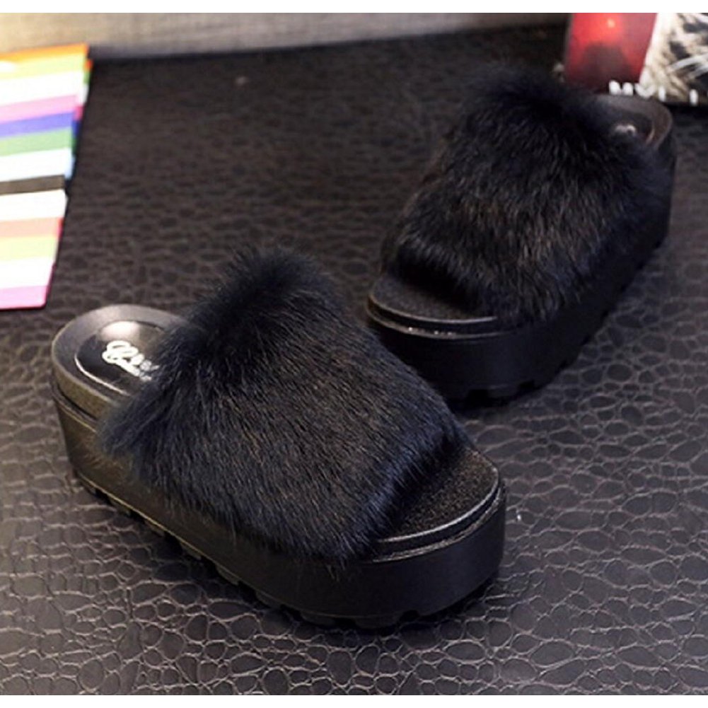 Fashionable fur sandal is a Boryumi fur.