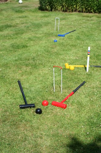 Your Lawn Croquet set includes - 4 brightly coloured hard wood mallets 77cm (30in) long