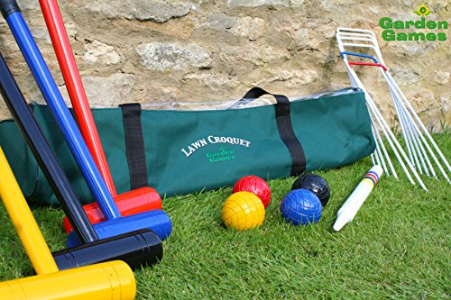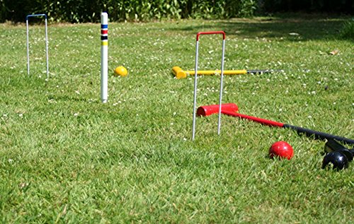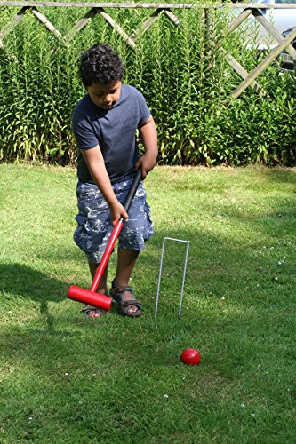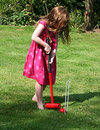 The brightly coloured wooden mallets and wooden balls make younger players able to play alongside adult competition with ease. Substantial mallets but lighter and shorter than the official size make this set the perfect take along garden game. Some full sized competition sets are simply too large and unwieldy for younger players. And some toys sets are just too small and flimsy for adults to play. The Garden Games Lawn Croquet set allows players of all ages to enjoy the game at an economic price. With a zip close bag with handy carry handles, the set allows adventurous play on the beach or down the park to be really easy . Why not enjoy croquet while camping or take along to family gatherings?