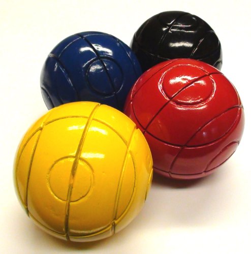 4 painted hard wood balls 7.5cm diameter, 220g (7 1/2 oz) in weight