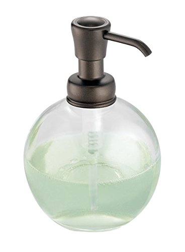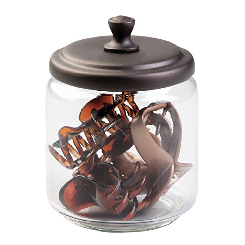 Canister stores vanity items such as cotton balls, cosmetic swabs, hair accessories and more; Glass soap dispenser pump holds 14 oz. and has wide opening for easy refills