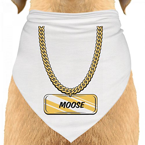 -. Binding : Misc. -. Brand : FUNNYSHIRTS.ORG -. Feature : Custom made and printed on demand when ordered / 5.9 oz, 100% spun polyester / Lightweight and sheer with a soft feel / Moisture wicking / Is your dog's name Moose? Keep your doggie fresh with this bandana that sports a pimp, gold chain and dog tag. Perfect for showing off your pup or puppy. -. Label : Johnson Plastics -. Manufacturer : Johnson Plastics -. Model : 237691-$P -. PackageQuantity : 1 -. ProductGroup : Pet Products -. ProductTypeName : PET_SUPPLIES -. Publisher : Johnson Plastics -. Studio : Johnson Plastics -. Title : Moose - Doggie Gold Chain: Triangle Dog Bandana