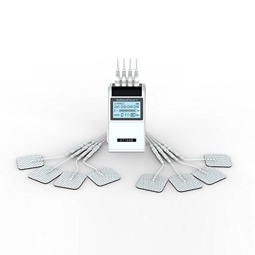 • FEATURES - Simultaneous dual output design, allows 8 pads to be applied to the four different targeted areas at the same time. A large, easy to read LCD display of current mode, current time left on session, intensity and battery level indicator. The device is powerful as 4 outputs have 100% power. The power is not divided by 4 outputs to weaken the strength. The device is powered by replaceable 3 AAA batteries. Power saving with Auto shut off when the device is not used.