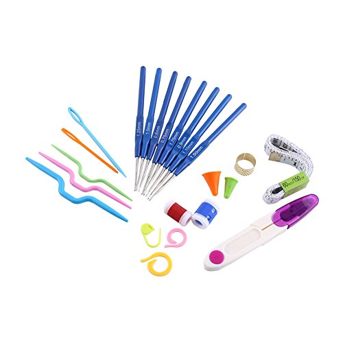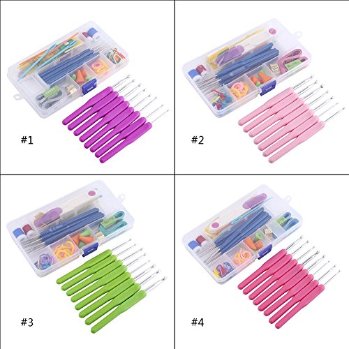 52 Piece 16 Size Crochet Hooks Needles Stitches Knitting Craft Crochet Set In Plastic Case ,Purple/Pink/Green/Rosy ( Color : Purple )