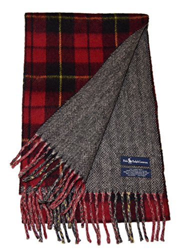 Polo Ralph Lauren Mens Lambswool Scarf Wool Black Grey Red Tartan Plaid Italy