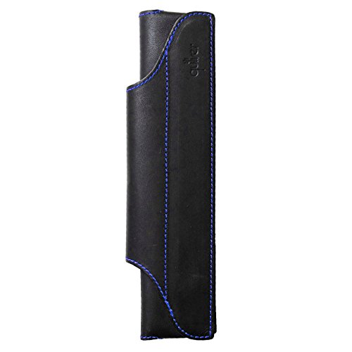 Large One Pen Holder Quiver, Leather Pen Holder For Notebooks, Pen Case & Pen Sleeve, Black Leather, Blue Stitching, A5, 8" - 8.5" tall (20.3 cm - 21.6 cm)