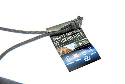 Studio : SE Publisher : SE Binding : Misc. Product Description Survival Ready Walking Stick, 440 Paracord Grip Wrap, and Wrist Strap is ready when you are. Made of Bianbai Wood, the stick measures 55" Long and comes with Removable Metal Reinforced Rubber Tip Metal Tip for Better Traction 0