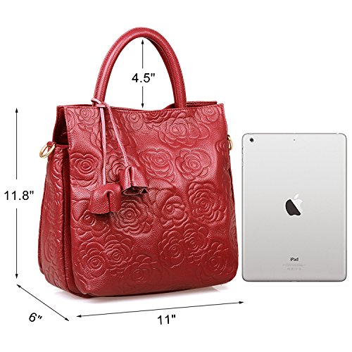 Dimension: (L*H*W) 11*11.8*6 inches, handle strap drops 4.5", the handbags along with a removable and adjustable leather shoulder strap. Long enough to be carried as top-handle bag, shoulder bag,crossbody bag.