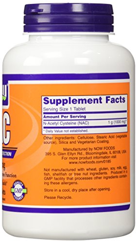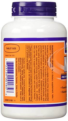 -. Binding : Health and Beauty -. Brand : Now Foods -. EAN : 0733739001856 -. Feature : Contains glutathione, a powerful free radical scavenging compound / Helps to maintain normal, balanced immune system function / Can help to support healthy brain and neuronal tissues -. IsAdultProduct : 0 -. Label : NOW Foods- Nutrition and Wellness -. LegalDisclaimer : Caution: For adults only. Consult physician if pregnant/nursing, taking medication (especially nitroglycerin) or have medical condition. Keep out of reach of children. -. Manufacturer : NOW Foods- Nutrition and Wellness -. Model : 733739001856 -. MPN : 733739001856 -. NumberOfItems : 1 -. PackageQuantity : 1 -. PartNumber : 733739001856 -. ProductGroup : Health and Beauty -. ProductTypeName : HEALTH_PERSONAL_CARE -. PublicationDate : 2015-10-18 -. Publisher : NOW Foods- Nutrition and Wellness -. ReleaseDate : 2015-10-15 -. Size : 120 -. Studio : NOW Foods- Nutrition and Wellness -. Title : Now Foods N-Acetyl-Cysteine Tablet, 1000 mg, 120 Count -. UPC : 733739001856