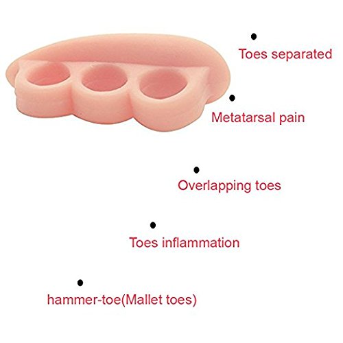 Three-ring design Three-ring design ring can separate all toes, does not affect wear shoes, toe loop design and soft silica gel texture can slow down forefoot metatarsal pain and hammer toe pressure. 0
