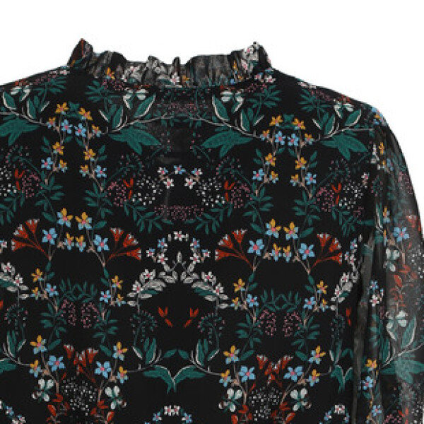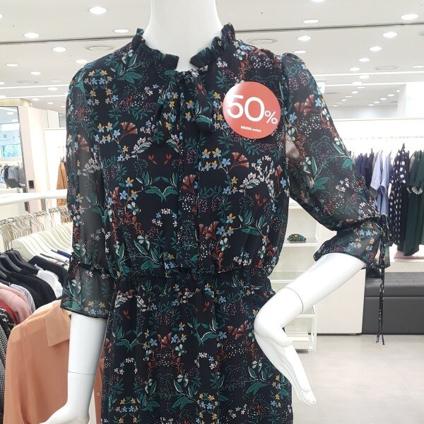 로맨틱하면서 빈티지한 감성을 느낄 수 있는 롱기장 플로럴 원피스입니다. 프릴 디테일의 네크라인에서 이어지는 타이 장식으로 리본 매듭을 묶어 포인트를 줄 수 있으며 밑단 러플 쉬폰 디테일이 페미닌한 제품입니다. 허리와 소매 밴딩 처리되어 편안합니다. 어깨부터 무릎까지 안감이 구성되었습니다.
