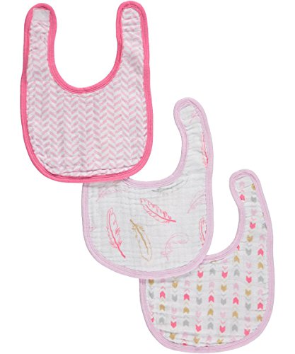 -. Title : Hudson Baby "Feather Medley" 3-Pack Muslin Bibs