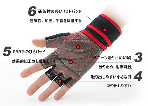 Akari 트레이닝 글로브 글로브 하프 손가락 글로브 팔 지킴 손목 보호 오름구탄력 피트 리스트 플랩 부착 립 라이크라(LYCRA) 재질 미끄럼방지 충격 흡수내 마모성 근육트레이닝