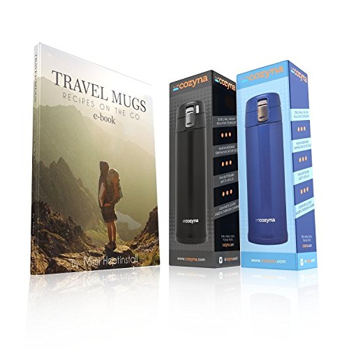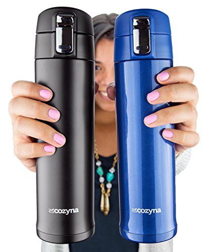 Insulated Travel Mug for Coffee And Tea by Cozyna, Stainless Steel, 16 oz, Black and Blue