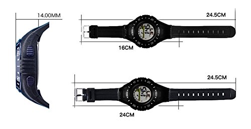 -. Feature : Second, minute, hour, date, day, month display. / Function: LED, waterproof, alarm, stopwatch. / Japanese quartz movement. / Perfect choice for your children. / Recommended age: more than 10 years old