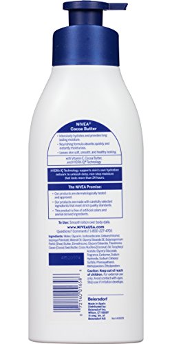 Nivea cocoa butter body lotion intensively hydrates skin and provides long lasting moisture. The nourishing formula absorbs quickly and instantly moisturizes, leaving skin soft, smooth, and healthy looking.Feature