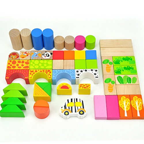 -. Title : TOP BRIGHT 50-Pieces Wood Blocks Set