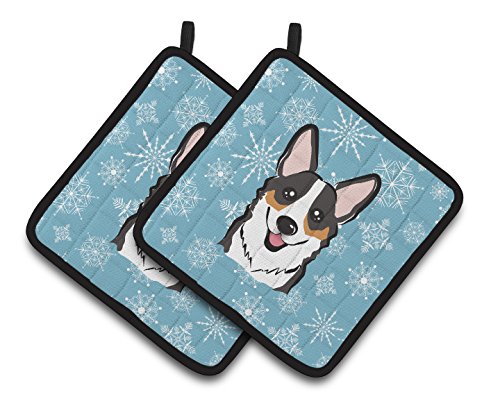 Caroline's Treasures Snowflake Tricolor Corgi Pair of Pot Holders BB1689PTHD, 7.5HX7.5W, Multicolor