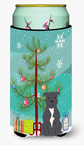 Caroline's Treasures Merry Christmas Tree Staffordshire Bull Terrier Blue Tall Boy Beverage Insulator Hugger BB4171TBC, Multicolor