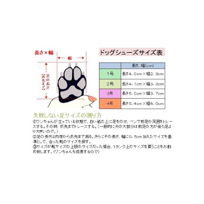 사전에 강아지의 발바닥 사이즈를 치수재기 해 승리(사진의 발의 치수재기 방법을 참조해 주십시오.)고, 대응 사이즈를 구매하셔 주십시오.기본적으로 개는 앞발의 사이즈 이 뒷다리의 사이즈 보다 크기 때문에 앞발 사이즈를 토대로(원인으로) 치수재기 주십시오.