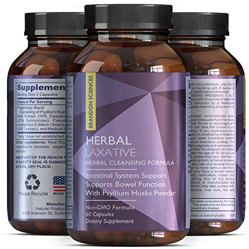 -. Title : 100% Herbal Laxative Capsules + Probiotics - Natural Colon Detox + Digestive Support + System Clean - Psyllium Husk Powder + Senna Leaf + Cascara Sagrada - Triple Herb Cleanse Pills - Brandon Sciences
