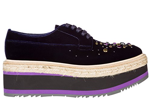 Prada women's classic lace up laced formal shoes blu