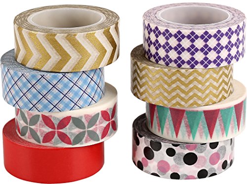 ST Washi Masking Tape collection ,0.59 inch X 10 Yards each,Pack of 8 - for DIY crafts,Scrapbook,Decorating Office Party creative projects