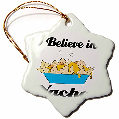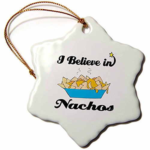 3dRose orn_105381_1 I Believe in Nachos-Snowflake Ornament, Porcelain, 3-Inch
