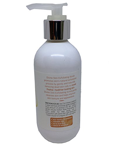 Use two to three times a week on a clean wet face and body, lightly massage a small amount of product into skin, using a gentle, circular motion and rinse thoroughly with warm water. For best results, use in conjunction with Divine Skin Light Moisturising Cream as part of a regular skin care regime.
