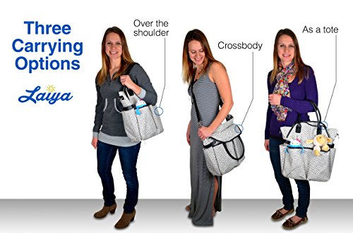PREMIUM DIAPER BAG BY LAIYA BABY: LARGE FASHION DIAPER TOTE WITH CROSSBODY STRAP