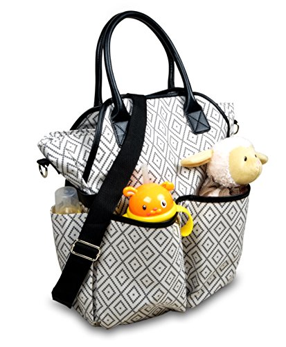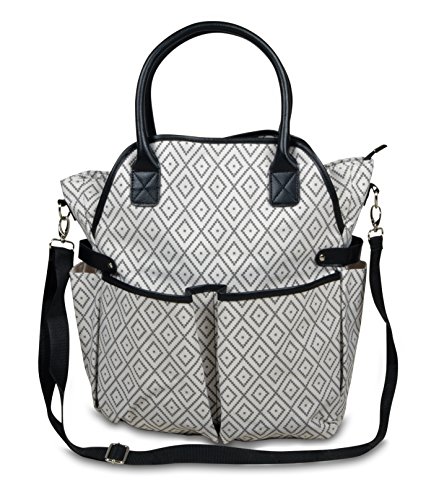 Premium Diaper Bag by Laiya Baby: Large Fashion Diaper Tote with Crossbody Strap (Gray/white pattern)