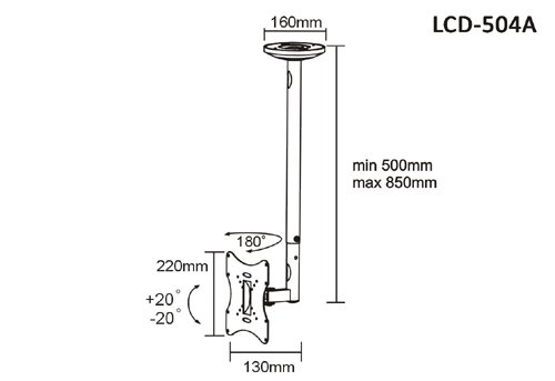 - Feature : Fits Most 23 to 42 inch Flat Panel Displays / VESA 75x75 100x100 200x100 200x200 compliant / Swivel 90° left or right -- Tilt 20° up or down / Extends 24.5" (62.5cm) to 34.5" (87.5cm) from ceiling / Supplied with all mounting hardware and instruction manual