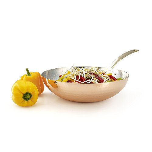 KUPRUM HAND HAMMERED SOLID HEALTHY NATURAL COPPER SPECIALTY STIR-FRY WOK PAN WITH TIN COATING