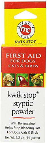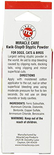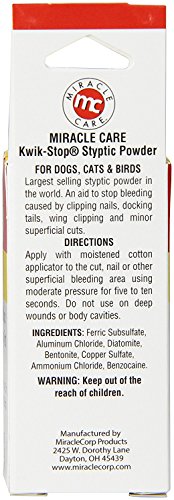 Studio : Kwik USA Publisher : Kwik USA Binding : Misc. Product Description Miracle Care Kwik-Stop Styptic Powder (.5 oz) formerly Gimborn leading styptic powder for over 40 years. Helps stop bleeding caused by clipping nails claws, docking tails minor superficial cuts. Contains Benzocaine. 0