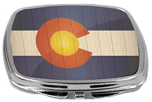 Rikki Knight Compact Mirror on Distressed Wood Design, Colorado Flag, 3 Ounce