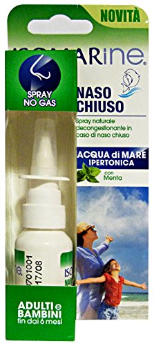 Studio : Coswell S.p.A. Publisher : Coswell S.p.A. Binding : Health and Beauty Product Description Isomarine Naso Chiuso ("Stuffed Nose") favors a quick relief from the earliest symptoms of cold, the sea water and mint based composition helps releasing the nose in a delicate way, and is suitable for adults and children 6-months and older. The hypertonic sea water has an naturally decongestant action, frees the nose from the excess mucus for osmosis, with no risk of addiction. The presence of mint gives a pleasant feeling of freshness, for immediate relief from stuffed nose even outside the home. 0
