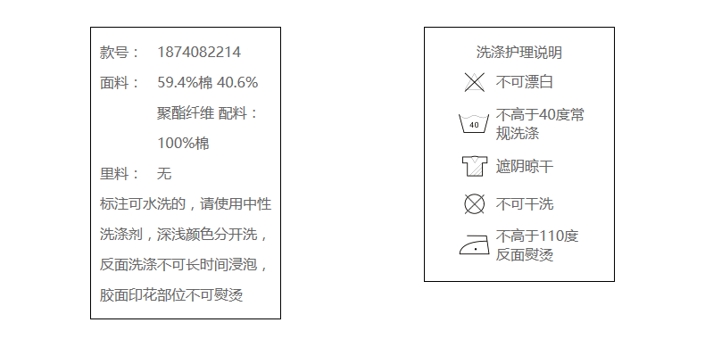 59.4%棉 40.6%聚酯纤维 配料:100%棉